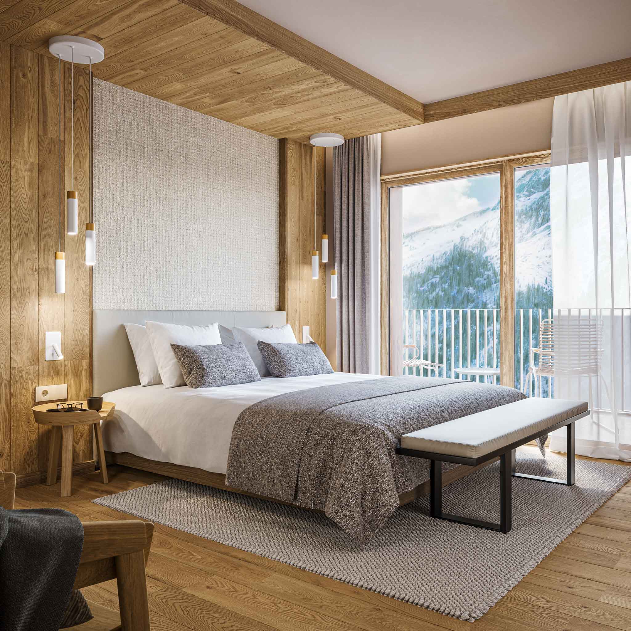 La réflexion sur les espaces, l’utilisation de la lumière et l’aménagement intérieur s’appuient sur les ressources et les contraintes du territoire afin de s’intégrer à l’esprit des lieux et de vous faire partager la magie de la vie alpine.
